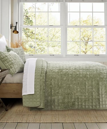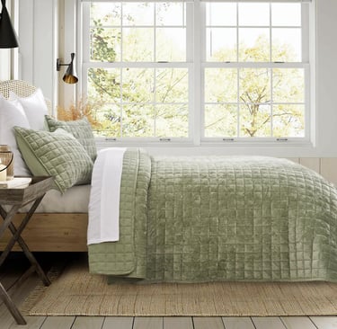 Make sure it's an all-season fabric, solid color for ease in accessorizing, and super soft. Check this bedspread to go with our rug and sheets of your color choice above: Click here to purchase