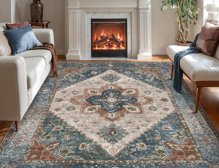 These washable rugs brighten my living room and clean up easily after spills!